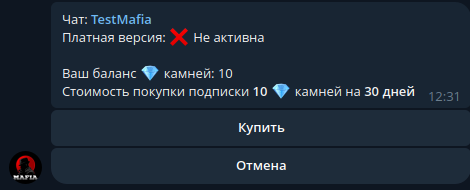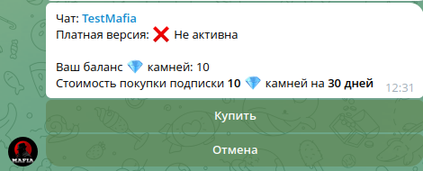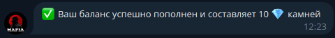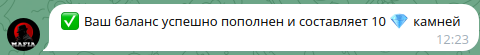 4.2. Приобрести камни можно через игровой профиль (команда /profile) в боте